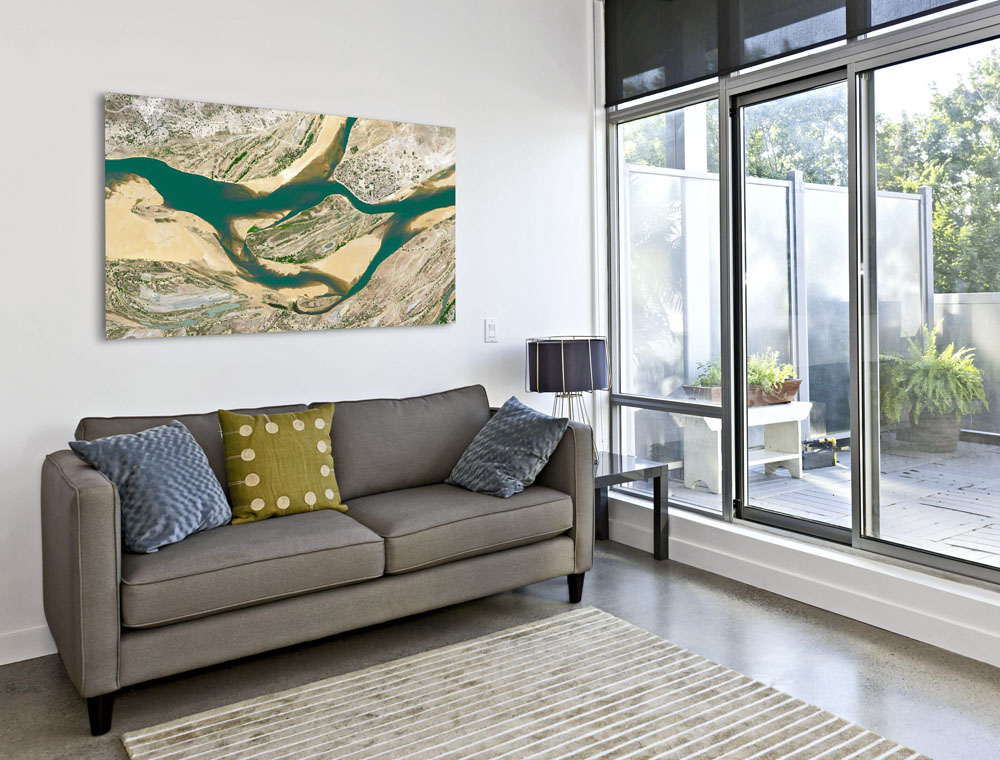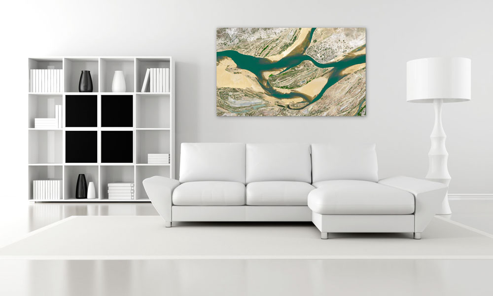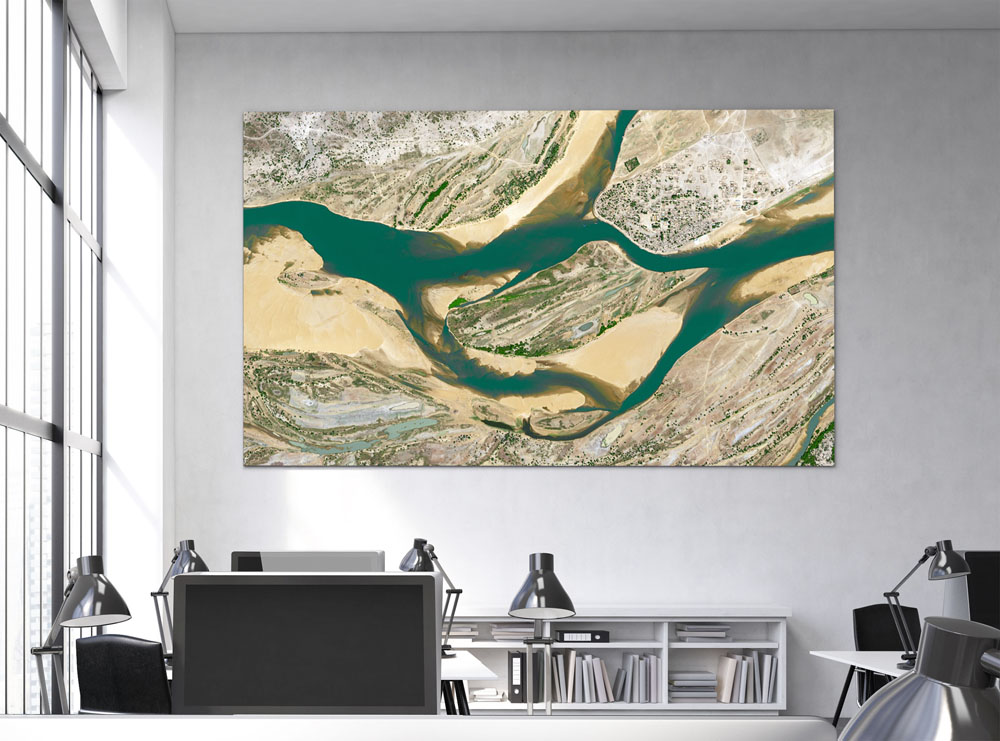 Bei niedrigem Wasserstand des Niger ist die kleine Anhöhe des Dorfs Diafarabé von ausgedehnten Sandbänken umgeben, die der Fluss bei Hochwasser abgelagert hat.