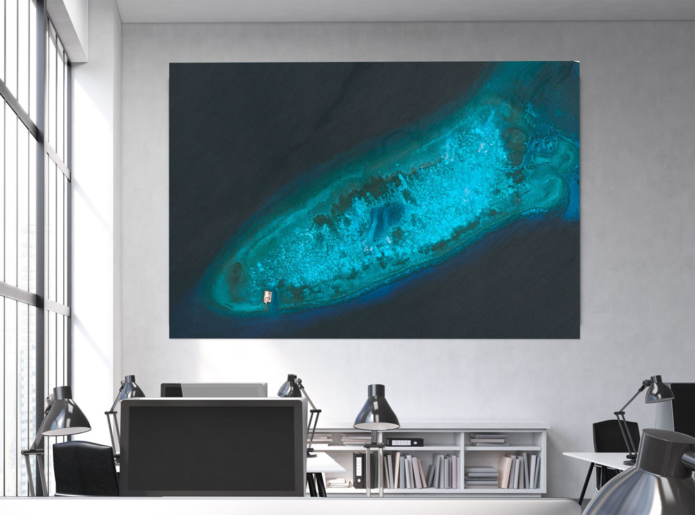 Die beiden Satellitenbilder vom 31. Mai 2014 (oben) und vom 14. Juni 2018 (unten) verdeutlichen, welchen Aufwand Staaten zu treiben gewillt sind, um ihre Interessen zu wahren. Innerhalb weniger Jahre wurde bei den Spratly-Inseln im Südchinesischen Meer ein Korallenriff in eine Insel umgewandelt, auf der eine kleine Stadt samt Sportanlagen mit Fußballplatz und Tennisplätzen errichtet wurde. Sie beherbergt eine Militärgarnison, die über einen eigenen Flughafen mit einem 3,3 km langen Landestreifen verfügt.