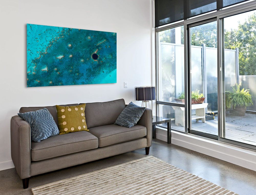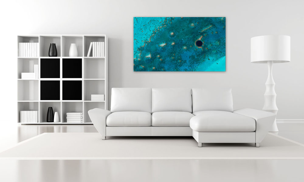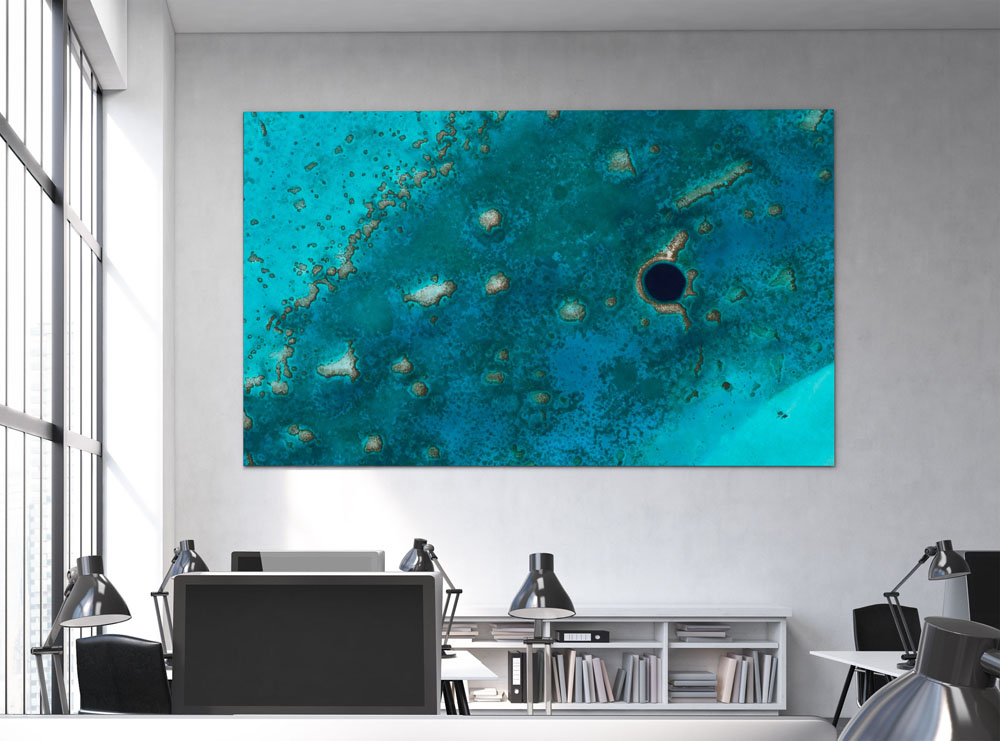 Die Karibikküste vor Belize ist von Korallen-riffen und Atollen gesäumt. Inmitten eines dieser Atolle, des Lighthouse Reefs, liegt das Great Blue Hole, das sich durch seine dunkle Farbe gut von der Umgebung abhebt. Das nahezu kreisrunde Loch mit einem Durchmesser von ungefähr 300 Metern ist das Ergebnis von Erosionskräften – aus dem Kalkfels des Untergrundes wurde eine Höhle ausgewaschen, die später vom Meer geflutet wurde.