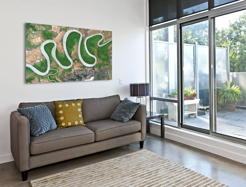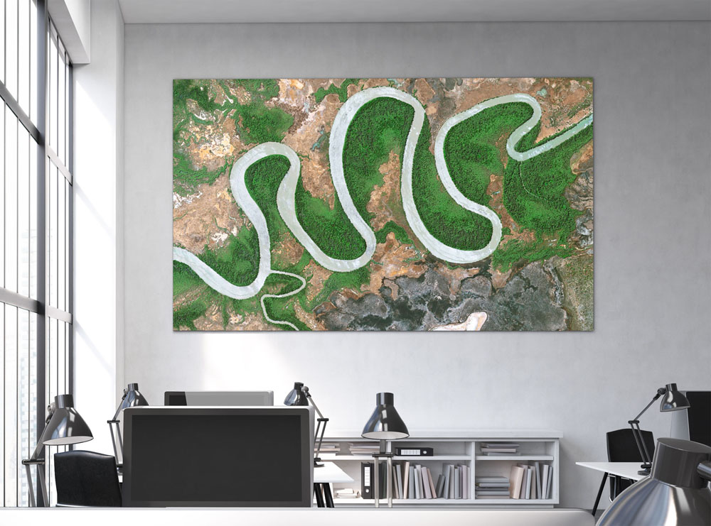 Die ausgeprägten Flussschlingen des Liverpool Rivers nahe seiner Mündung in die Arafurasee vor dem Arnhem Land in Nordwest-Australien sind von dichten Mangrovenwäldern gesäumt. Auf erhöht gelegenen Flächen sind Eukalyptuswälder zu finden. Arnhem Land ist als Siedlungsgebiet der Aborigines für Touristen üblicherweise gesperrt. Ausnahmegenehmigungen müssen bis zu einem Jahr im Voraus beantragt werden.